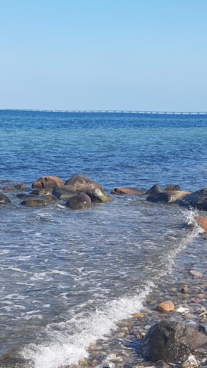 Самая быстрая дорога до Гамбурга лежит через паромную переправу. но по понятным причинам была нами решительно отвергнута. При выезде из города мы снова оказались на вполне себе длинном мосту «Большой Бельт» через одноименный пролив. Берег на противоположной стороне был пологий, чем мы и воспользовались. Уж больно хотелось до водицы добраться и насладиться красивыми видами пролива и моста.