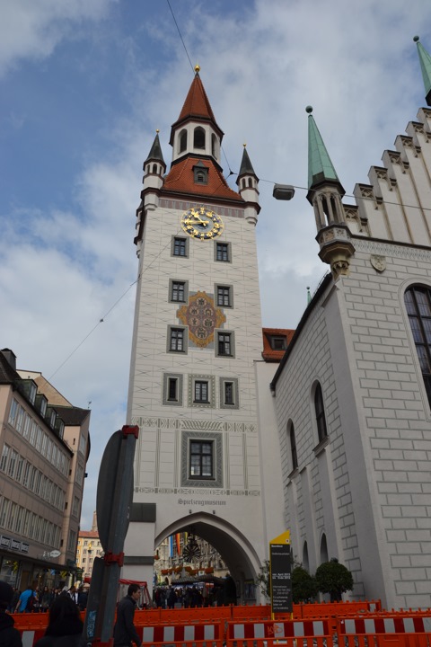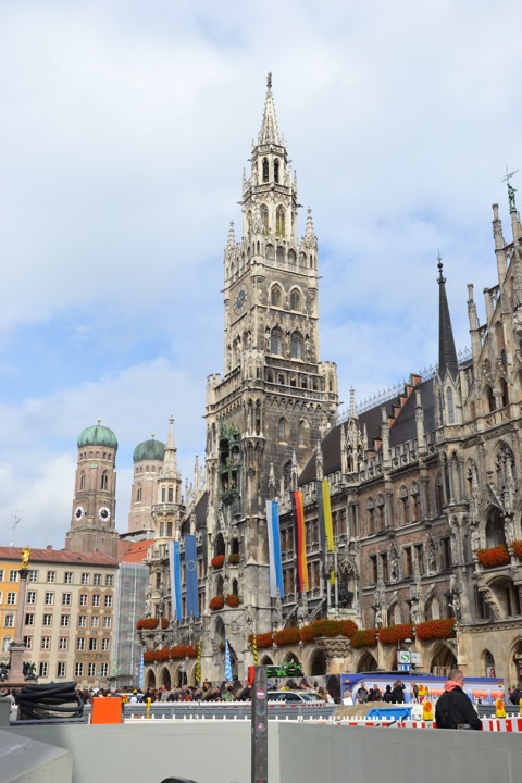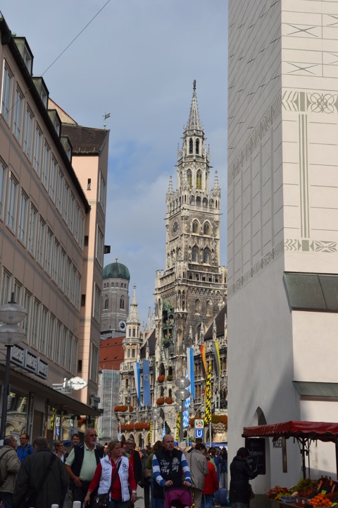 Разглядывая людей в костюмах мы неспешно вышли на центральнаую площадь города, на которой стоит колонна Девы Марии, поставленная Максимилианом I — Мариенплац (нем. Marienplatz).