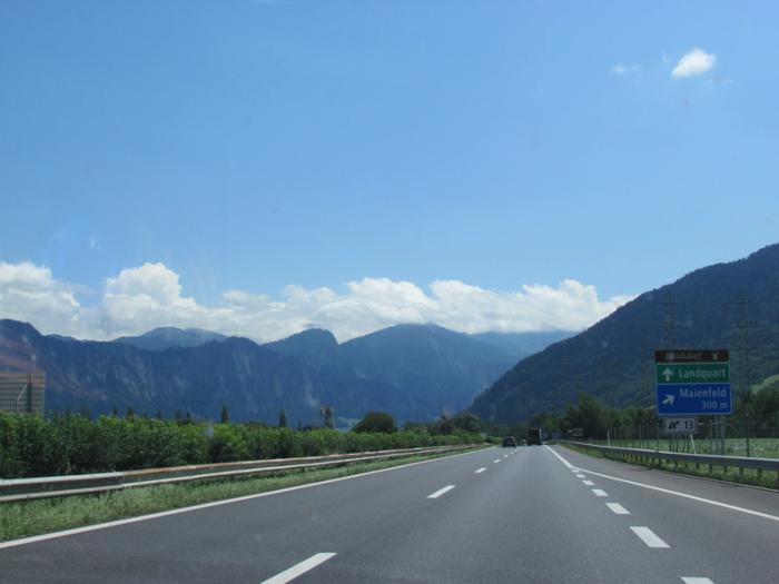 Немного отъехав от Мюнхена, попали в сильнейший ливень, видимость ухудшилась, некоторые включили противотуманные фонари. Но закончился ливень также быстро, как и начался. К нашему удивлению никаких луж на автобане не наблюдалось, к тому же когда остановились на очередную заправку, то обнаружили, что машина не только не стала грязной, а наоборот смылась пыль, которая накопилась за предыдущие километры. Подъехав к австрийской границе на специальном пункте, бывшем немецко-австрийском погранпереходе, купили австрийскую (на 10 дней – 8 евро) и швейцарскую (на 2012 год – 33 евро) виньетки, приклеили их под лобовым стеклом и продолжили наш путь.