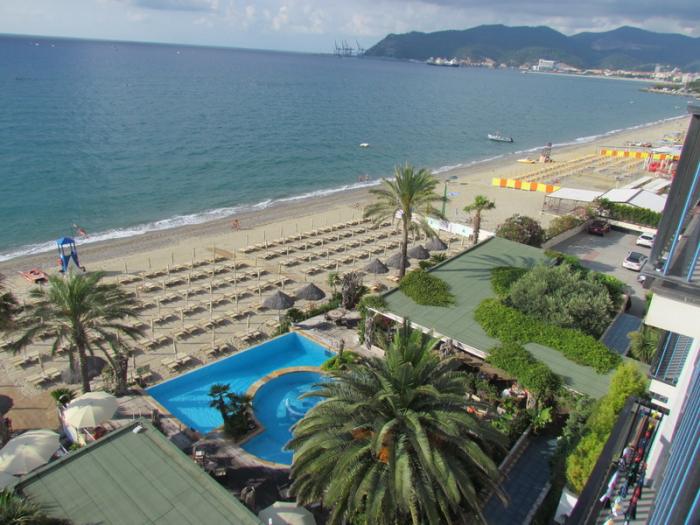 :)! Нет конечно. Все очень просто. Первая фото сделана утром с балкона номера в гостинице, а вторая с людьми на городском пляже в обед. :)