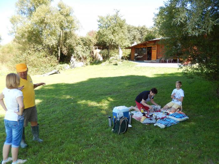 И тут к нам спешит в сапожищах местный житель и хозяин этой, как оказалось частной территории. Нам повезло, Йозеф оказался местным рыбаком и очень доброжелательным мужчиной, немного говорившим по-русски. Узнав, что мы едем на машине из России, да ещё и с Черного моря, он был в диком восторге. Открыв свой рыбацкий домик угостил сына конфетами, а водителя безалкогольным пивом.