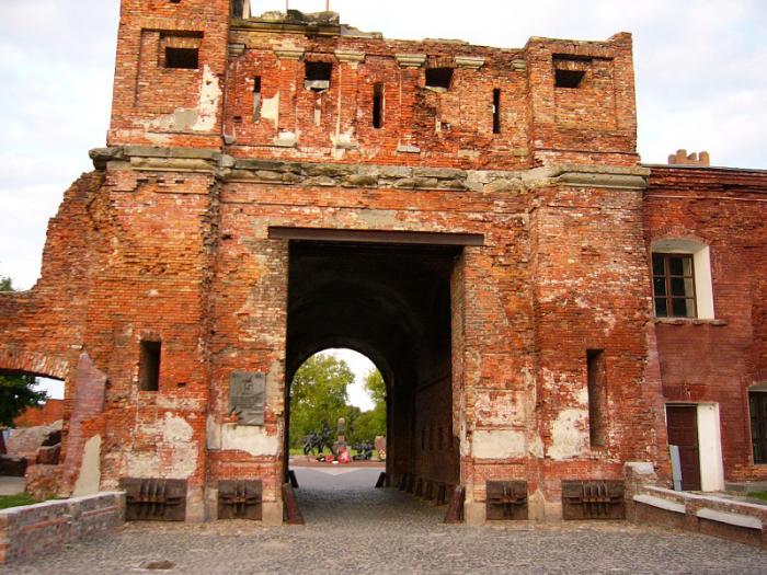 Тереспольские ворота на берегу Западного Буга, одни из пяти сохранившихся ворот крепости. Во время артиллерийских обстрелов ворота были сильно повреждены, а верхняя часть полностью уничтожена.