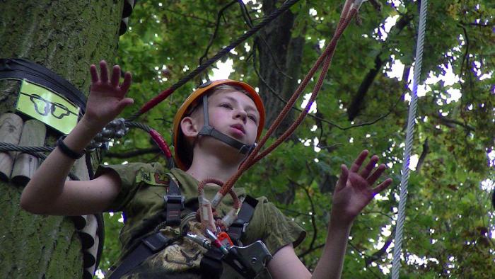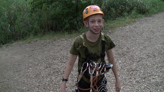 Итак на Вовчика сначала одели снаряжение, потом научили пользоваться карабинами и вперёд…