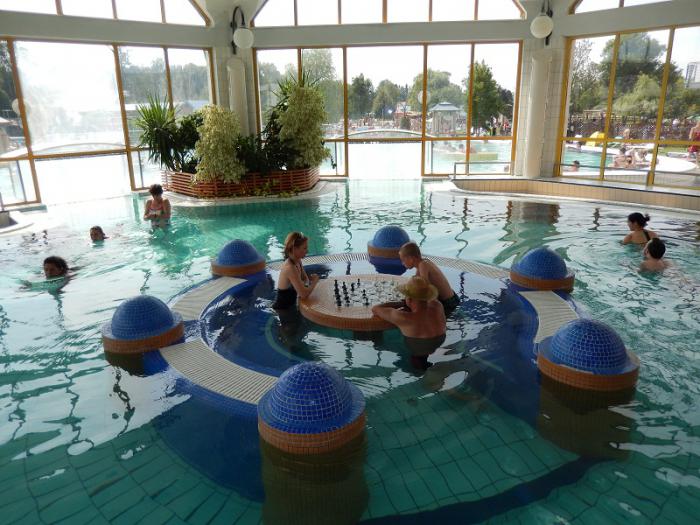 Я заметила что венгры любят находясь в термальном бассейне играть в шахматы, вот и мы с сыном попробовали. Даже сыграли одну партию, правда не долго, с местным шахматистом…