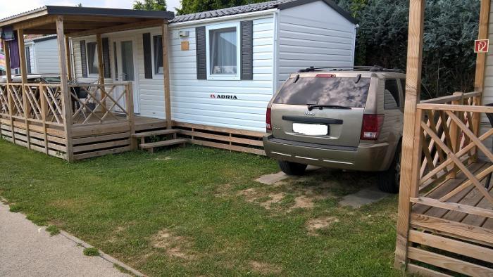 Кемпингом оказался большой комплекс с местами для автотрейлеров и мобильных домиков, называется «Thermal Camping Mobile Homes». У нас был забронирован мобильный домик на 3 ночи. Проживание на четверых, плюс постельное бельё и свободное посещение Термального комплекса обошлось в 20.000руб. Мы уже жили в таком домике, в кемпинге возле Рима, поэтому имели представление что нас ждёт. Домик хоть и небольшой, но есть все удобства — 2 спальни, с/узел с душевой кабиной, кухня со всеми удобствами и принадлежностями, телевизор, сплит.система и своя веранда со столиком. Вполне уютненько. И машину можно ставить рядом с домиком, что тоже удобно.