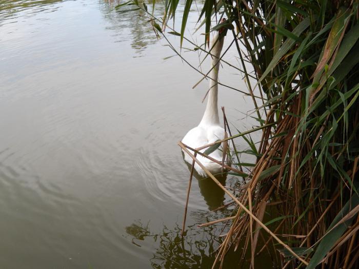 Но когда видит что ничего им не дают, начинает демонстративно жевать камыш…