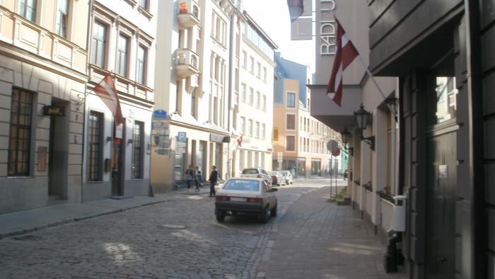 Качество дорожного покрытия на дороге от границы до Риги так себе. Но не жаловался. Наконец, через какое-то время я въехал в Ригу. Навигатор очень быстро завёл меня в Старый Город и я припарковал свою машину у отеля, в котором нам предстояло жить все дни пребывания в Латвии — четырёхзвёздочном Radi Un Draugi, расположенном в самом центре Старого Города: