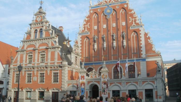 Дом Черноголовых. Был полностью разрушен во время Второй мировой войны и заново отстроен в 1999 году. Внутри располагаются музей и концертный зал: