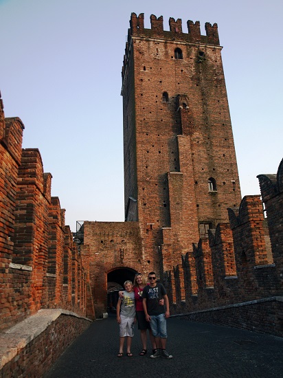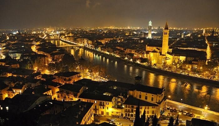 Вечером, абсолютно без сил, мы вернулись в кемпинг, поужинали и пошли по улочке наверх в замок Пьетро, из которого открывается прекрасный вид на город, чтобы посмотреть на ночную Верону. Мы оказались там не одни. Оказалось, что по вечерам туда поднимается много народу, в основном молодежь и влюбленные парочки, которые сидят на стенах замка. Налюбовавшись видами, мы вернулись в кемпинг и легли спать, завтра нас ждала Парма и Пиза.