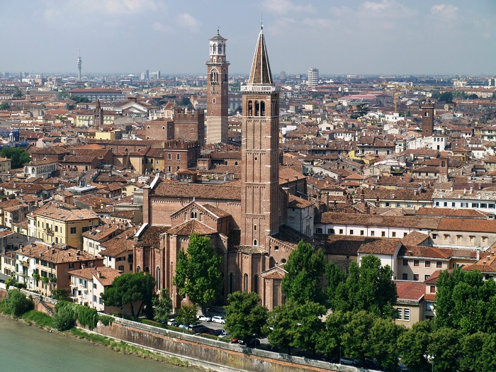Вид на Верону с горы около кемпинга и замка San Pietro: