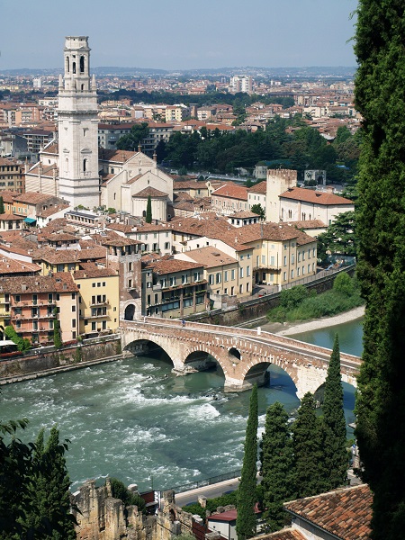 Мы спустились с горы, перешли через реку Адидже по мосту Пьетро и попали в старый город: