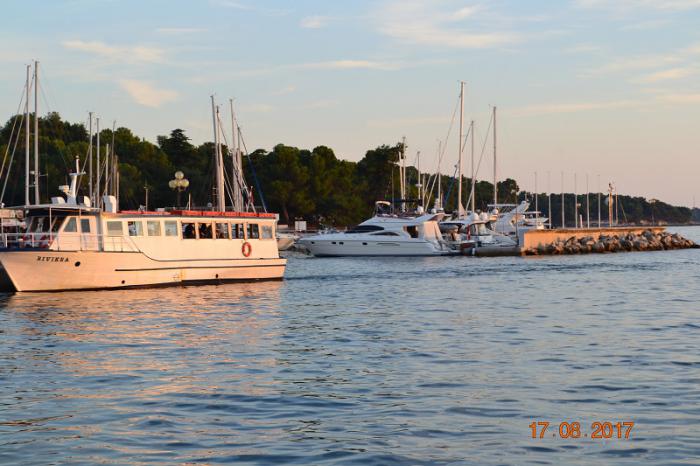 В городе огромное количество ресторанов, кафе, пиццерий. Мы ужинали в пиццерии «Nono», огромная пицца «Pepone» обошлась нам в 70 кун. Мы втроём её еле осилили, было вкусно, обслуживание на высоте. Нам повезло попасть в это заведение без очереди, а так стабильно вечером 6-7 человек ожидающих свободного столика. Рядом с нашими апартаментами в ресторане отеля «Laguna Poreč» можно прекрасно покушать по системе «шведский стол». Завтрак – 16 евро, обед – 18 евро, ужин – 20 евро на человека. Мы раньше пару раз жили в этом отеле, выбирали его исключительно из-за ресторана, который нас всегда радовал разнообразием и вкусовыми качествами блюд. В этот раз решили узнать у обходительных русскоговорящих официантов, можно ли у них поужинать, не являясь гостем отеля. Не проблема. В итоге, после плотного ужина с трудом, но пошли прощаться с Поречем.
