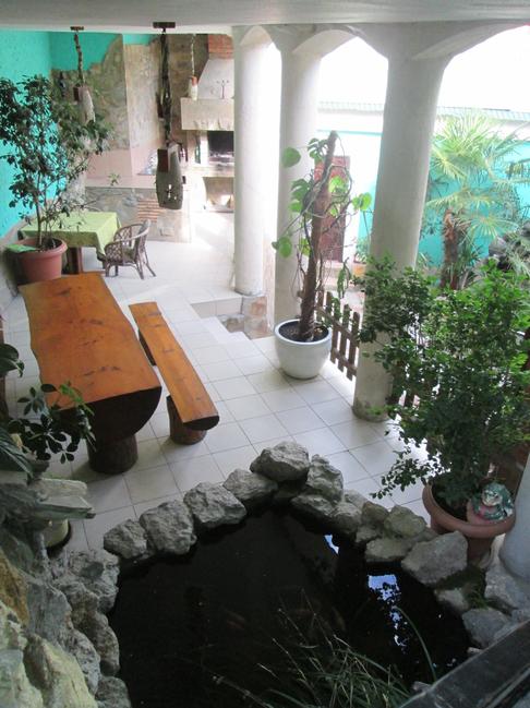 Планируя поездку ещё в Москве, я не стал выбирать новый отель, а забронировал номер в уже проверенном, в котором останавливались два года назад — отеле «Райский уголок», расположенном на горе, в 15 минутах ходьбы от набережной. Пешком ходить туда-сюда каждый раз — занятие изнурительное, ведь дорога к отелю резко вверх идёт. Но мы на машине, а на своём авто — всё нипочём ;) Плюс, каждое утро маршрутка хозяина отеля забирает постояльцев и отвозит на пляж Массандры, часам к 12 забирает и привозит обратно. Виды из отеля и некоторых номеров — отличные, панорамные, на город: