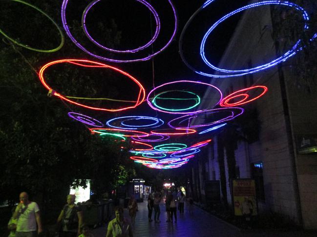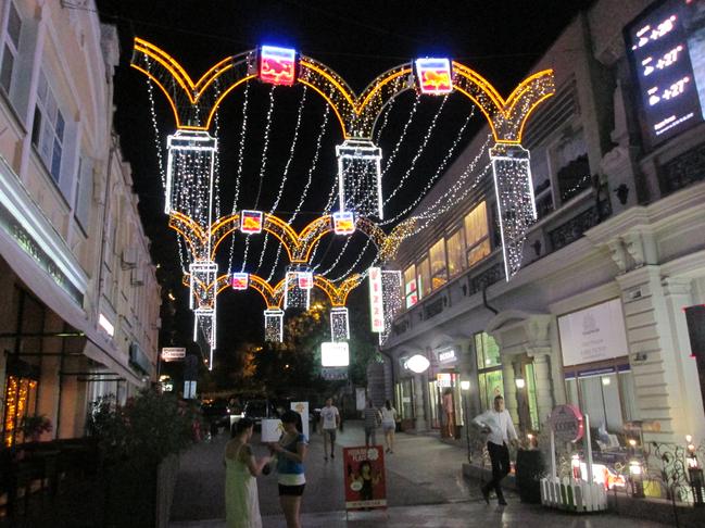 За последние два года город сменил световые инсталляции, но в целом ночная Ялта всё такая же, как и два года назад. И всё так же приятно просто спокойно прогуляться по набережной, когда уже совсем стемнело.