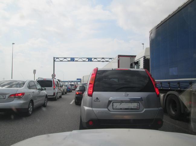 Я думал выехать в 4 ночи, чтобы быть в отеле в Ялте вечером, а не поздно ночью, как два года назад — но накануне перед выездом так провозился с машиной, что вернулся домой только в час ночи. Чуть более пяти часов поспал — и, быстро собравшись, дал по газам в направлении трассы М4 «Дон». Дорога была лёгкой, но на одном участке, не доезжая до поворота на Донецк, пришлось несколько часов постоять в стоячей пробке. Причем пробка без видимой причины была — просто в какой-то момент мы поехали, потом быстрее, ещё быстрее, и пробка бесследно рассосалась…