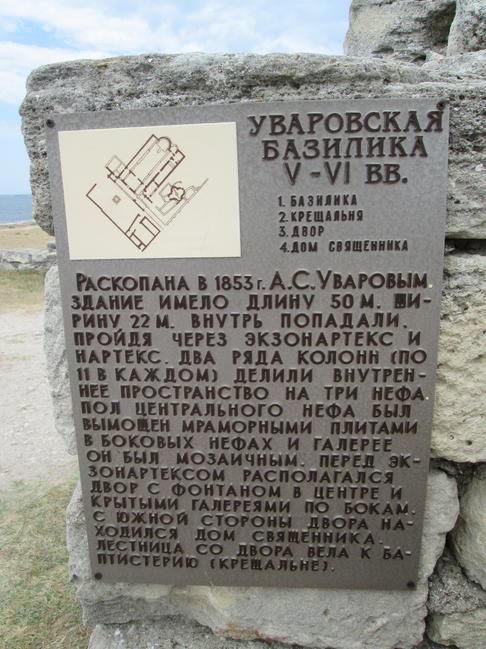 Уваровская базилика — самый крупный христианский храм в Крыму. Его размеры — 50 на 22 метра, построен в 6-7 веках, имел три продольных зала — нефы: