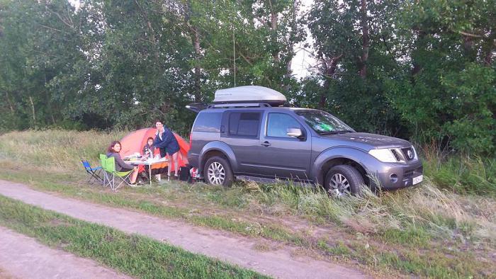 Ааааа, это рыбаки поехали на речку", — подумал я и стал пытаться уснуть снова. Через 20 минут ситуация повторилась. Потом ещё. К этому времени жена тоже была разбужена. Трудно не проснуться, когда на расстоянии 3х метров от тебя проносятся машины. В 4:00 мы окончательно поняли, что место нами выбрано не удачно и выспаться тут нам не удастся. Встали, начали готовить завтрак и собираться в путь. Как всегда это заняло у нас неоправданно много времени. Невыспавшиеся мы тронулись в путь. Единственным положительным моментом этой ночёвки оказались противомоскитные сетки, которые были самостоятельно сшиты и показали хорошие результаты: в машине было свежо, а комаров не было.