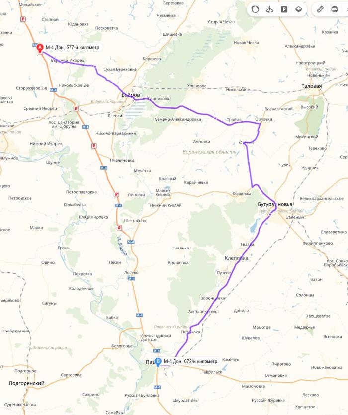 А вот выезд из этого места на М-4 неудобный. Если вы там остановились, то придётся выезжать в сторону центра города и делать петлю, иначе короткий путь может для вас закончится проездом под запрещающий знак и пересечение сплошной непрерывной линии.