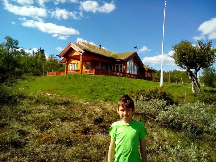 На этот день у нас был запланирован путь до места нашего основного в Норвегии проживания — Lofthus Camping в городке Lofthus. Еще в начале весны я вел переписку с кемпингом, где получил подтверждение бронирования 4-х местной кабины за 375 крон – это порядка 4000 рублей, на берегу фьорда. Эта переписка была основанием для получения визы. В ходе переписки мне также обещали предоставление в аренду лодки по цене 800 рублей в час, о катании на лодке во фьорде я давно мечтал. Фотографии кемпинга были красивые, что в действительности подтвердилось. Нам был предоставлен крайний домик, куда мы поставили (правда, самовольно) кемпинговский столик, завтраки-ужины проходили с прекрасным видом на фьорд. Кабина небольшая, примерно 4,0*4,0 м, с двухярусными кроватями, с плиткой и холодильником, без удобств. Душ и туалет метрах в 20, душ платно – 50 рублей за 5 минут. Мойка в 60 м, там же можно готовить, и стиральная машина (за плату).
