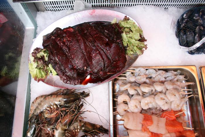 В Бергене посетили местный рыбный рынок, с целью попробовать экзотическое китовое мясо. Нам дали попробовать маленький кусочек, надо сказать, не впечатлило, но теперь знаем. Заказали также гребешки-гриль (за маленькую шпажку с четырьмя кусочками отдали около 1000 рублей), с лимончиком, половине членов семьи понравилось, половине – нет, мне показалось похожим на сало по структуре.