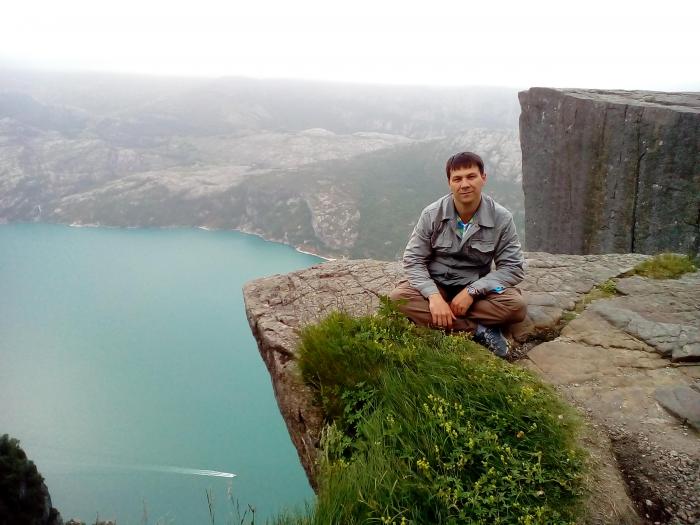 Проехав Odda, мы, сами того не зная, попали на мощный и красивый водопад Latefossen, если ехать по дороге 13, мимо него не проехать. Далее также были прекрасные места, где мы фотографировались и смогли собрать землянику. В городке Nesvik мы воспользовались паромом (1100 рублей), и далее, через 60 км, прибыли на стоянку около Прейкестолена. Парковка (вариант один – на весь день) стоила около 1000 рублей, но мы нашли в 100 метрах кармашек, на две машины, и уже вечером, часов в 6, пошли в долгий 2-х часовой путь на Трибуну Праведника. Дорога нетяжёлая (не сравнить с дорогой на ледник Вuer), около 8 часов мы были наверху, и очень удачно – небо было чистое, а народу практически не было, смогли сделать хорошие фото. Вообще, место впечатляет, это надо видеть, но желательно спланировать так, чтобы было безоблачно, иначе всю красоту не оценить. Подходить к краю было страшно – все-таки 600 метров до воды – но были смельчаки, сидевшие на краю свесив ноги, безумцы!