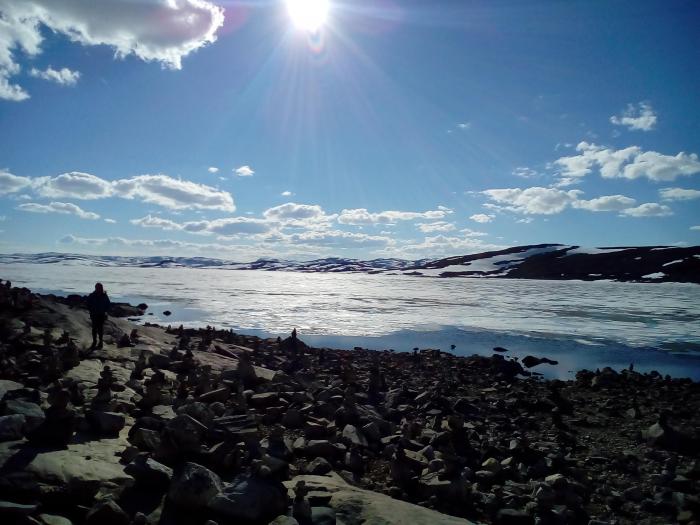 Далее мы ехали по живописной дороге до Крисарвика и далее в Лофтхус, где приходилось останавливаться каждый час для просмотра красот норвежской природы, фотографии об этом скажут лучше. Мы видели и красивые горные реки, и суровую красоту тундры, и замершие горные озера, и полностью покрытые снегом горы. В итоге приехали в кемпинг мы в 20.30. Следующие 4 дня мы провели около Лофтхуса, на чем остановлюсь подробнее.