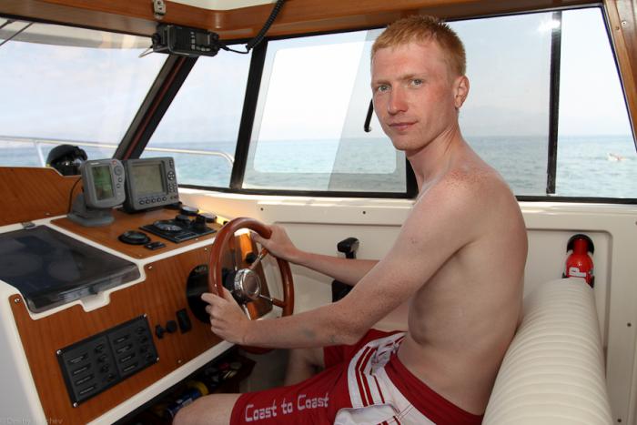Владелец яхты русский не знал, а по английски разговаривал очень плохо. По дороге в море мы кое-как разобрали, что далеко от берега отплывать не будем, а нашей добычей должна стать скумбрия. Когда остановились и волны разошлись, мы увидели рыбу в толще воды. Закинули удочки, но скумбрия плавала мимо, а на нашу наживку ей было плевать…