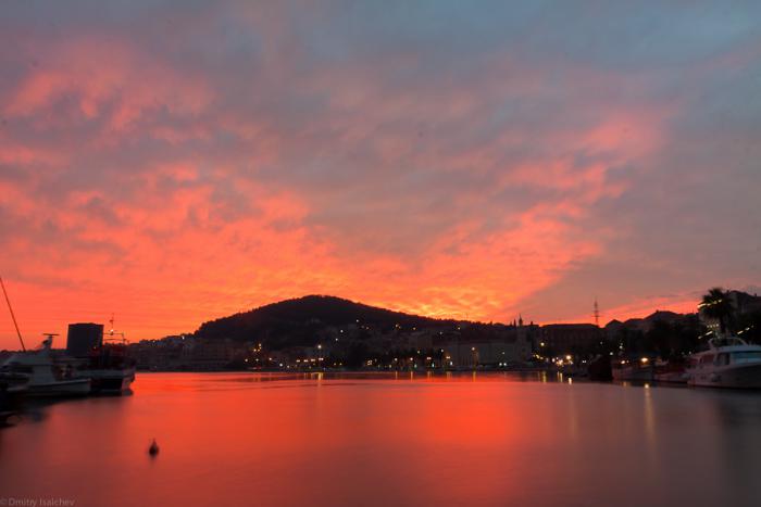 Несколько минут все небо было красным, потом стало пурпурным и плавно переходило в фиолетовый! Потрясающе!