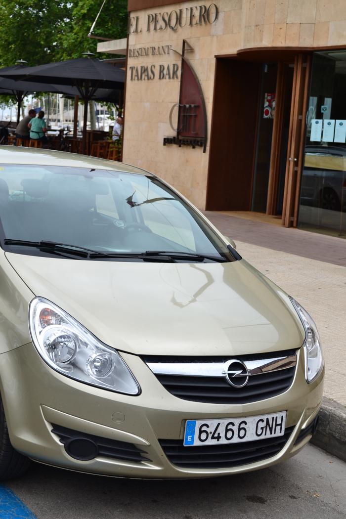Стоила красавица 30 евро в сутки со страховкой с франшизой (на лобовое стекло, днище, зеркала и колеса). Так как неделю мы уже откатались, посмотрели дороги и культуру вождения, то решили расширенную страховку не брать. Машина была арендована на два дня, что бы скататься в Пальму. Сразу же отвечу на вопрос, почему только на два дня. Во первых, если брать машину на один день, то сдать ее надо до 20.00, во вторых — в прокате нам сказали, что на следующий день сдают много машин и будет оферта (предложение) дня. В третьих — ДОРОГО!!!