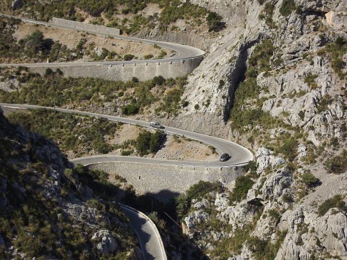Еще до приезда на Майорку, на форумах частенько запугивали дорогой в эту красивую бухточку. Но мы не лыком шиты, так что вперед и с песней! Тем более, что автобусы там ездят, значит на машине проехать вообще не вопрос. Дорога вот такая