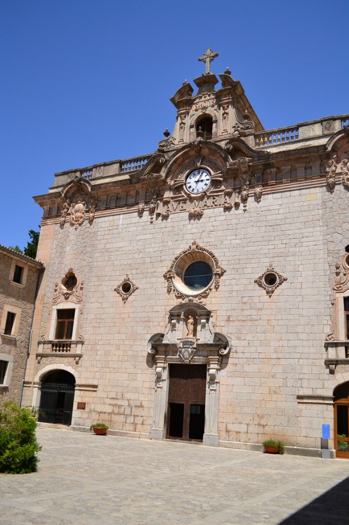 Обязательное место, которое мы хотели посетить это монастырь Lluc — его название происходит от латинского lucus («священная роща»). Храм посвящен покровительнице Майорки — Богоматери Льюк. Легенда о возникновении этого монастыря повествует о том, что один крестьянин, пасущий в этих горах овец, обнаружил образ святой Девы с младенцем на скалистом склоне рядом с ручьем. В тот же день пастух перенес святой образ в часовню местного церковного прихода Sant Pere d'Escorca. Когда на следующий день местные жители пришли поклониться святыне, то с удивлением обнаружили, что образ святой Девы с младенцем исчез, и снова был обнаружен недалеко от того места, где был впервые найден, неподалёку от ручья. Это чудо происходило дважды, после чего местные жители построили небольшую часовню, для поклонения образу на том месте, где он был первоначально найден, а затем построили монастырь.