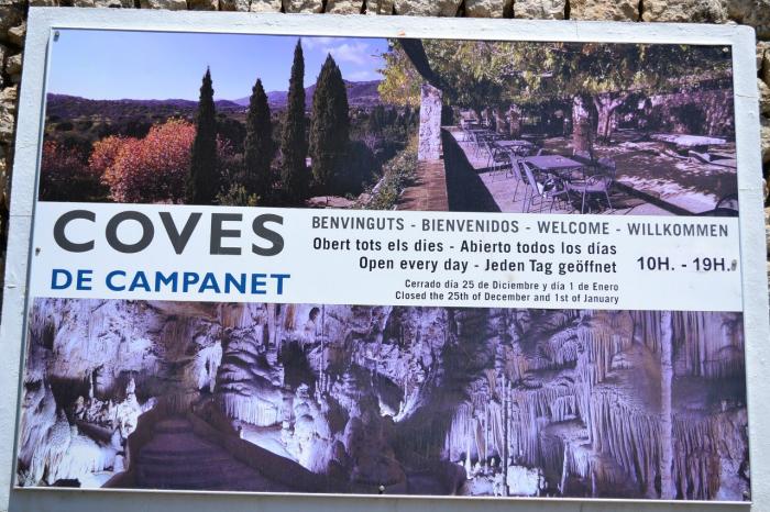 Дальнейшим в наших планах было посещение пещер. Но ехать в раскрученные места как в пещеры Дракона или Арта не очень хотелось, да и отзывы были как то не очень. Тогда решили поехать туда, где отзывов нет совсем, в пещеры Кампанет. Coves de Campanet расположенные чуть более 3 км от Campanet, эти пещеры не таких впечатляющие, но все же они замечательные, сталактиты и сталагмиты имеются в изобилии. Ученым эти пещеры особенно интересны, так как здесь обитают местные виды слепых плотоядных жуков. Пещерные изгибы образовались благодаря терпеливой водной эрозии подводных вод и представляют собой замысловатый кристаллический орнамент сталактитов и сталагмитов, выделяющихся своей тонкостью и белизной. Пещеры имеют площадь 3200 квадратных метров и длину 400 метров. Маршрут длинною в 40 минут открывает многочисленные галереи и просторные помещения в известковых скалах эры мезозоя.