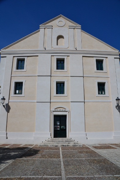 Двадцать минут со стороны автострады – и вот мы уже стоим, пытаясь понять, куда нам ехать: вверх или вниз. Поехали вверх – и оказались на крошечной площади, где с одной стороны была церковь (о ней – ниже), а с другой – театр Лопе де Вега: