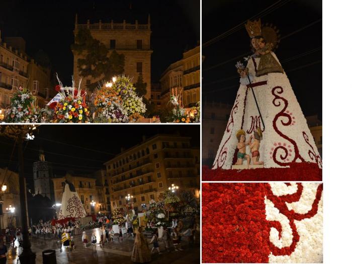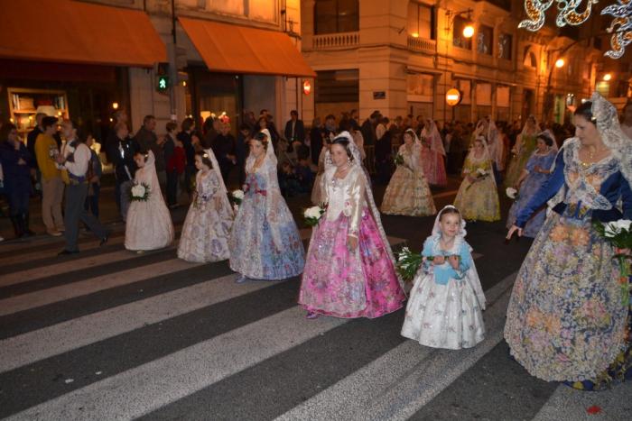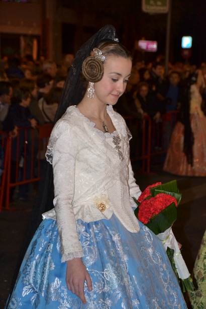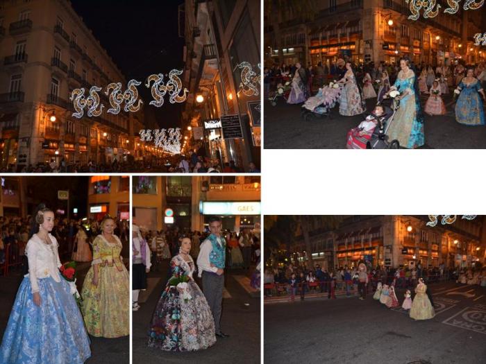 В этот день 18 марта мы застали торжественное шествие нарядно одетых валенсийцев, которые несли цветы для украшения 14-метровой фигуры Богоматери. Этот этап праздника Фальяс носит название La Ofrenda de Flores a la Virgen de los Desamparados. Валенсийцы-мужчины сопровождают во время шествия своих ярко и богато наряженных женщин: жен, сестер, дочерей…