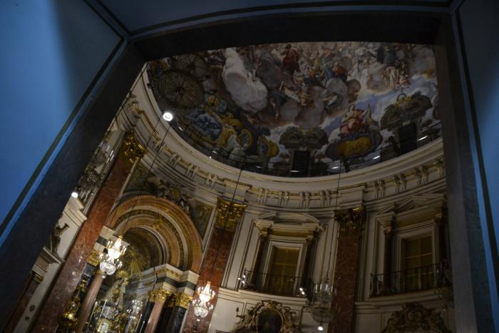 Звуки оркестров то и дело перекрывают оглушительные разрывы петард: участники праздника бросают взрывающуюся пиротехнику прямо под ноги! Андрей меня чуть не убил, потому что я вопила от ужаса, пока чуть-чуть не попривыкла к постоянной канонаде. Вот в этом уникальном круглом дворе (вид в гугле сверху – лучше) взрывы не прекращались ни на минуту, а особенности акустики в таком пространстве только многократно усиливали эффект: