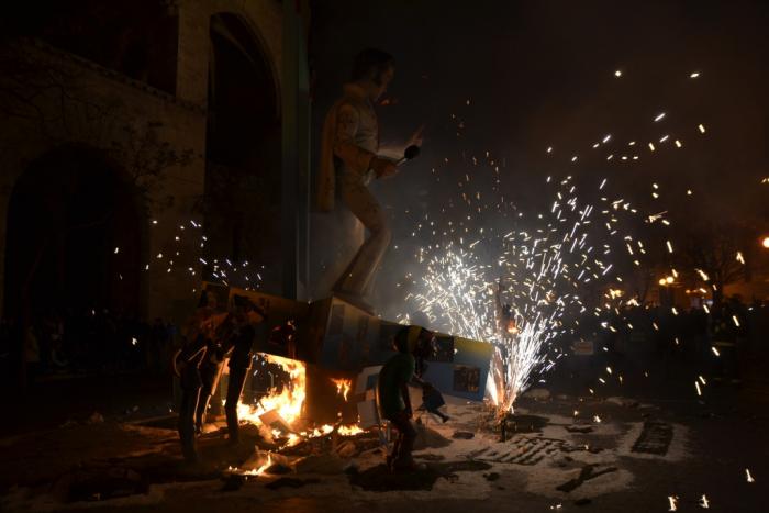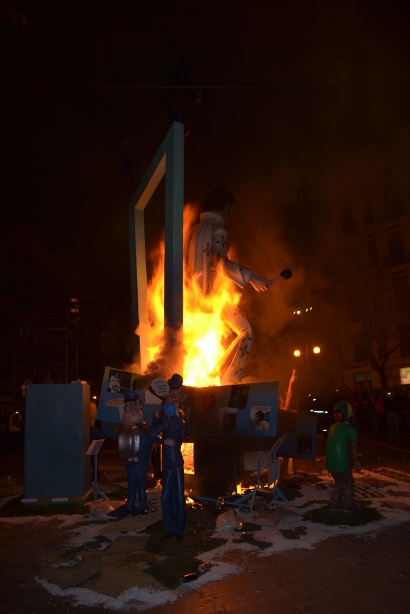 Как мы заранее узнали, фигуры сжигают в два этапа. Сначала поджигают маленькие композиции, так называемые ниньо. А уже затем приходит очередь и больших фигур, высота которых может достигать двадцати метров. Правда, самую красивую и интересную — милуют и помещают в музей Фальяс, специально для этого созданный в Валенсии.
