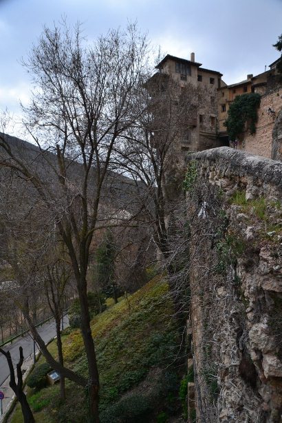 Куэнку, как я уже упоминала, можно смело назвать одним из самых запоминающихся и необычных испанских городов. Его исторический центр находится на возвышенности (высота – около 950 м над уровнем моря) и окружен реками – Хукар и Уекар (по-испански пишется почти неприлично – Júcar и Huècar). Вот внизу вьется лентой одна из них, что поменьше – Уекар: