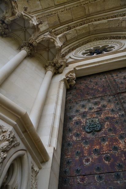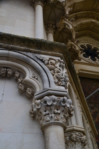 Необычным фасадом «в стиле нормандской готики» (это не я такая грамотная – путеводитель) в полной мере насладиться не получилось – вовсю шли работы. Так что пришлось акцентировать внимание на деталях главного портала:
