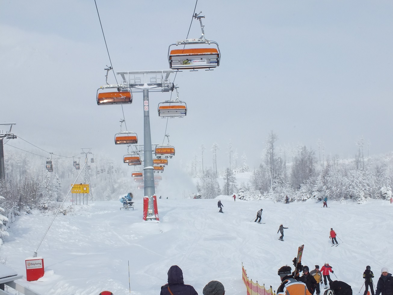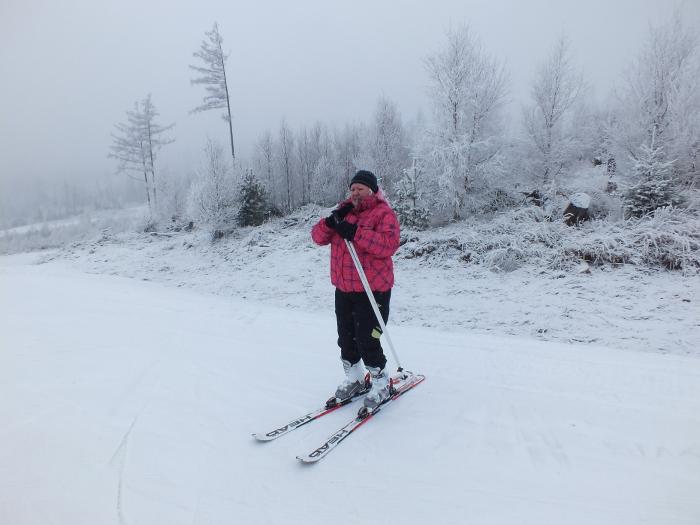 Утром следующего дня едем на гору кататься, приехали по раньше народу еще не много, очереди на подъемники нет. Берем ски пасы и вперед на гору, длина трассы чуть больше 2 км. не Австрия конечно, но вполне нормально, ски пас 30 евро на целый день. Цены в кафешках в конце спуска не очень большие, да еще для тех кто берет ски пас на день, скидки. Кофе 1 евро, глинтвейн 1.5, блинчики с разной начинкой 1.5, больше ничего не покупали, но все приблизительно столько же. В горах снега действительно оказалось много, трассы хорошо подготовлены.