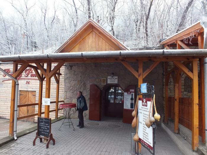 Бабушка налила в бокалы все вина, что у нее есть, вышло что то около 9 бокалов, грамм по 150, налила не жалея почти полные, попробовав по чуть чуть все выбрали два вида собственно Бычью кровь и Мерло, бабушка одобрила выбор и заставила выпить нас все налитые бокалы, возражения не принимались, не то что мы за рулем не то что много налила. В общем купили у нее 5л одного вида и 5л другого, расплатились хотели уходить не тут то было налила еще большие бокалы, ну и за успешную сделку, за дружбу народов, какие русские хорошие покупатели, не то что поляки, ели вырвались.Обошлось нам ее вино в 600 форинтов за литр, где то 75 рублей. Выйдя на улицу, решили иди в следующие погреба, посетили в итоге еще 3.