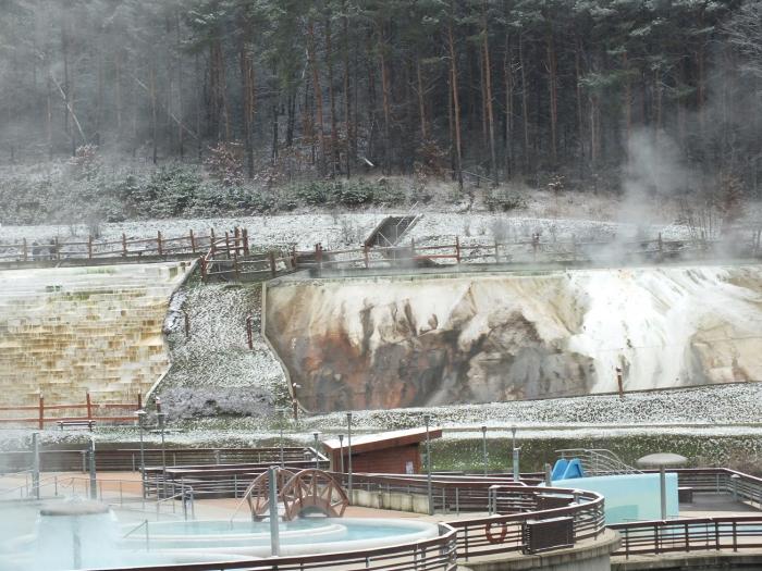 Источники находятся на окраине городка, опять радует цена, 6,5 евро на человека за 4 часа и 8,5 на целый день.4 часа вполне достаточно. Большинство бассейнов под открытым небом, вода в бассейнах в каждом разная, есть сероводородный, есть ароматизированный травами, просто бассейн для плаванья и еще с какими то минералами, очень понравилось.