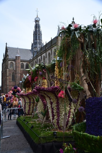 Оставив машину в крытом паркинге, мы еще успели прогуляться по вечернему Харлему как раз вдоль пути цветочной процессии.