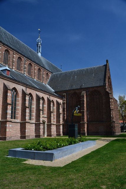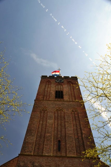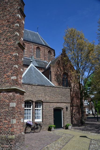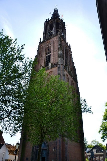 Пройдя до конца Langestraat, мы свернули в сторону церкви Онзе-Ливе-Фраувекерк / Onze Lieve Vrouwekerk, т.е. Пресвятой Богородицы. Вот ее колокольня вздыбилась на добрую сотню метров: