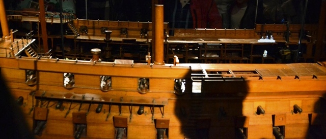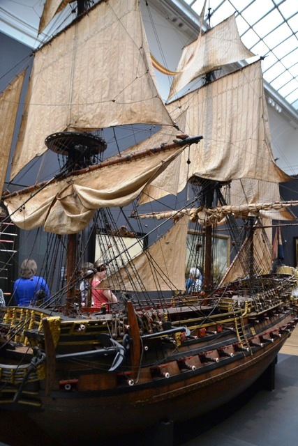 Здесь в макет корабля в разрезе были внесены современные технологические штучки: представлены различные инсталляции – самодвижущиеся человечки, которые убирают палубу, поднимают флаг, снимают штаны и ложатся спать в гамак (видно не очень, но, поверьте, двигаются):