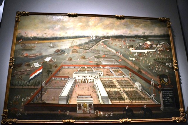 Есть среди экспонатов музея очень примечательная картина: если ее художественные особенности небесспорны, то историческая ценность – абсолютна. Это картина Хендрика Ван Схейленбурга «База Ист-Индской Компании в Хаули в Бенгалии». Это была одна из крупнейших баз в Индии, более похожая на великолепный дворец. Основными товарами были хлопок и селитра. Жизнь на базе предстает в самых разных проявлениях: вот переносят грузы, купают лошадей, знатные купцы прогуливаются в саду. Изображены и диковинные местные ритуалы: кремация, а также сцена истязания на заднем плане справа.