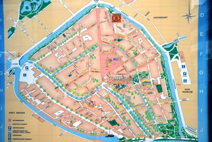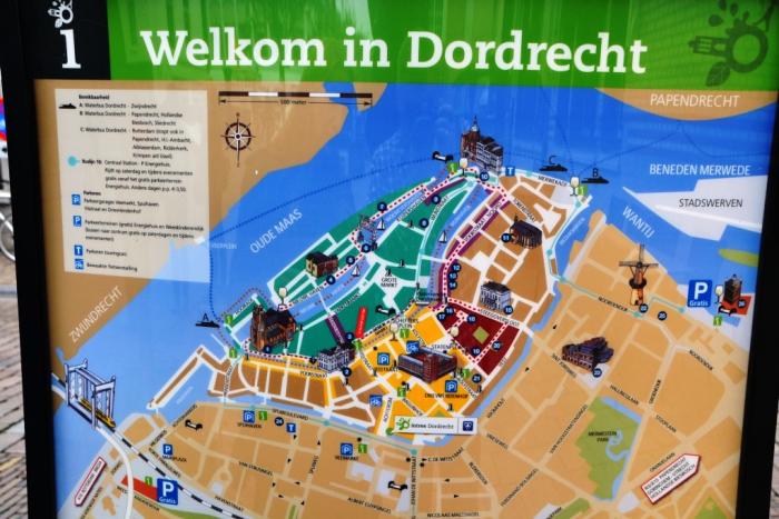 Информационный центр в Дордрехте оказался далеко за пределами старого города. Поэтому за картой мы не пошли, оставили машину на крытой парковке и сфотографировали информационный щит формата «Вы здесь»: