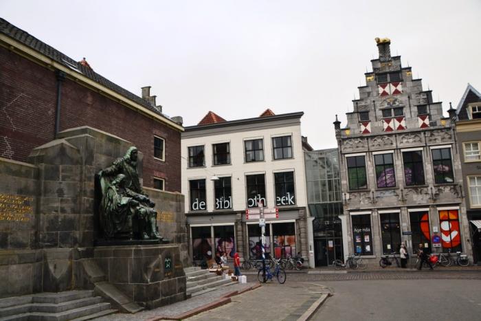 Об истории города рассказывает памятник знаменитым уроженцам города, братьям де Витт – Яну и Корнелиусу (кстати, дом справа – «Золотой вол», сейчас здесь центральная городская библиотека). Историческая справка из «открытых источников» об этих деятелях: