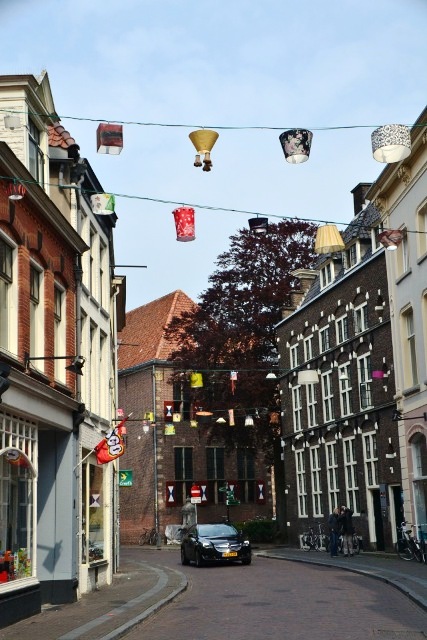 Улицы Зволле повсеместно украшены абажурами самых разных конфигураций. Это ведь, наверно, собирались, думали-решали, чем украсить город. «Может, утюги развесим? – Да нет, давайте ботинки старые!»