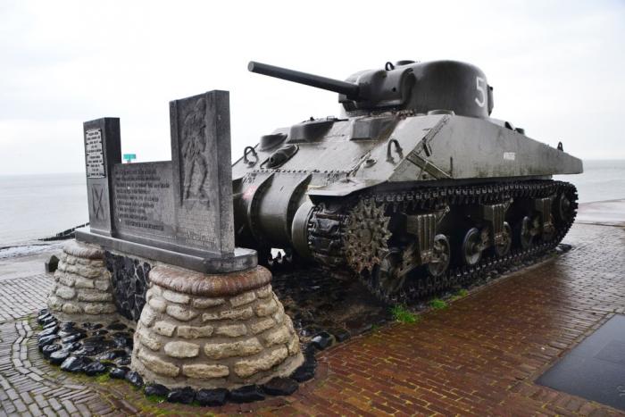 Во-вторых, памятные знаки и военная техника прямо на берегу дамбы, отделяющей город от моря:
