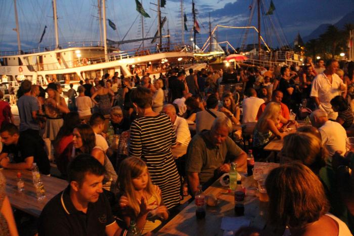 По четвергам, после опять же после 9 вечера, на побережье Адриатики в Хорватии проводят «Рыбацкие вечера». Чтобы было понятно и наглядно – это что-то вроде нашей Масленицы. На улицах (а точнее сказать на набережных, в портах) собираются желающие угостить и угоститься. По краю набережной выставляют лотки, мангалы, бочки, столы…